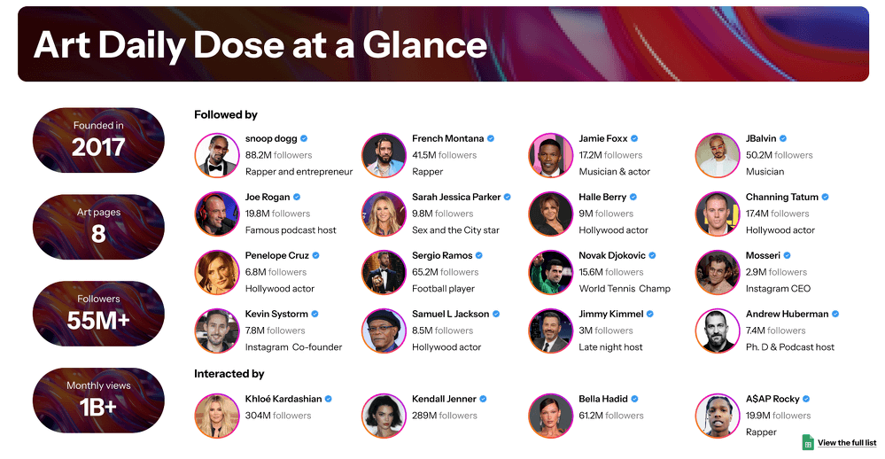 The platform’s influence extends well beyond its staggering follower count. It has become a vital tool for promoting cultural events and fostering relationships between artists and high-profile collectors. A multitude of influential individuals, ranging from celebrated celebrities to top-tier art collectors, actively engage with the content presented by Art Daily Dose. This community of followers not only amplifies the platform’s reach but also validates its authority as a trusted curator of art. Influential figures, who long have been associated with the finer aspects of art and culture, now look to Art Daily Dose as a modern conduit for artistic discovery and inspiration. Such an endorsement from the world’s most respected tastemakers further solidifies the platform’s role as an essential arbiter of art trends.