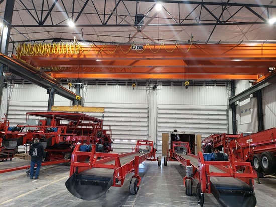 Spudnik Equipment relies on the cranes for manufacturing its potato harvesting and servicing machinery, with lifts reaching up to 20 tons. Several cranes were installed as part of new building construction to support the company’s business expansion, while others have been ordered as upgrades or replacements for existing equipment. HOJ managed all engineering, fabrication and installation for each project, providing Spudnik with a single-source solution throughout the partnership.
