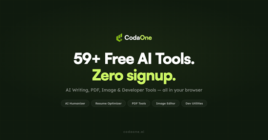 London, UK – Coda One, a London-based AI startup, has launched a free online platform combining 59 AI writing, PDF, image, and developer tools under one roof. The platform requires no account creation and no payment to use.