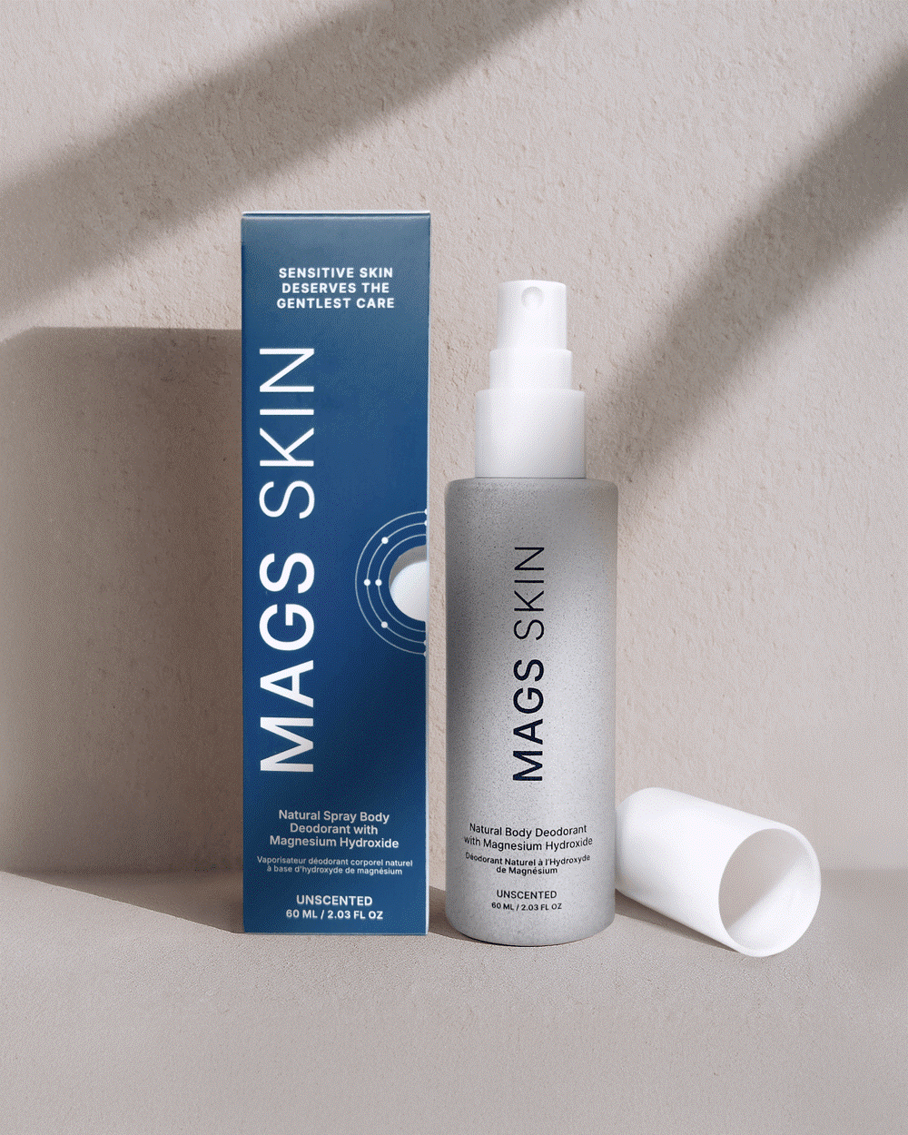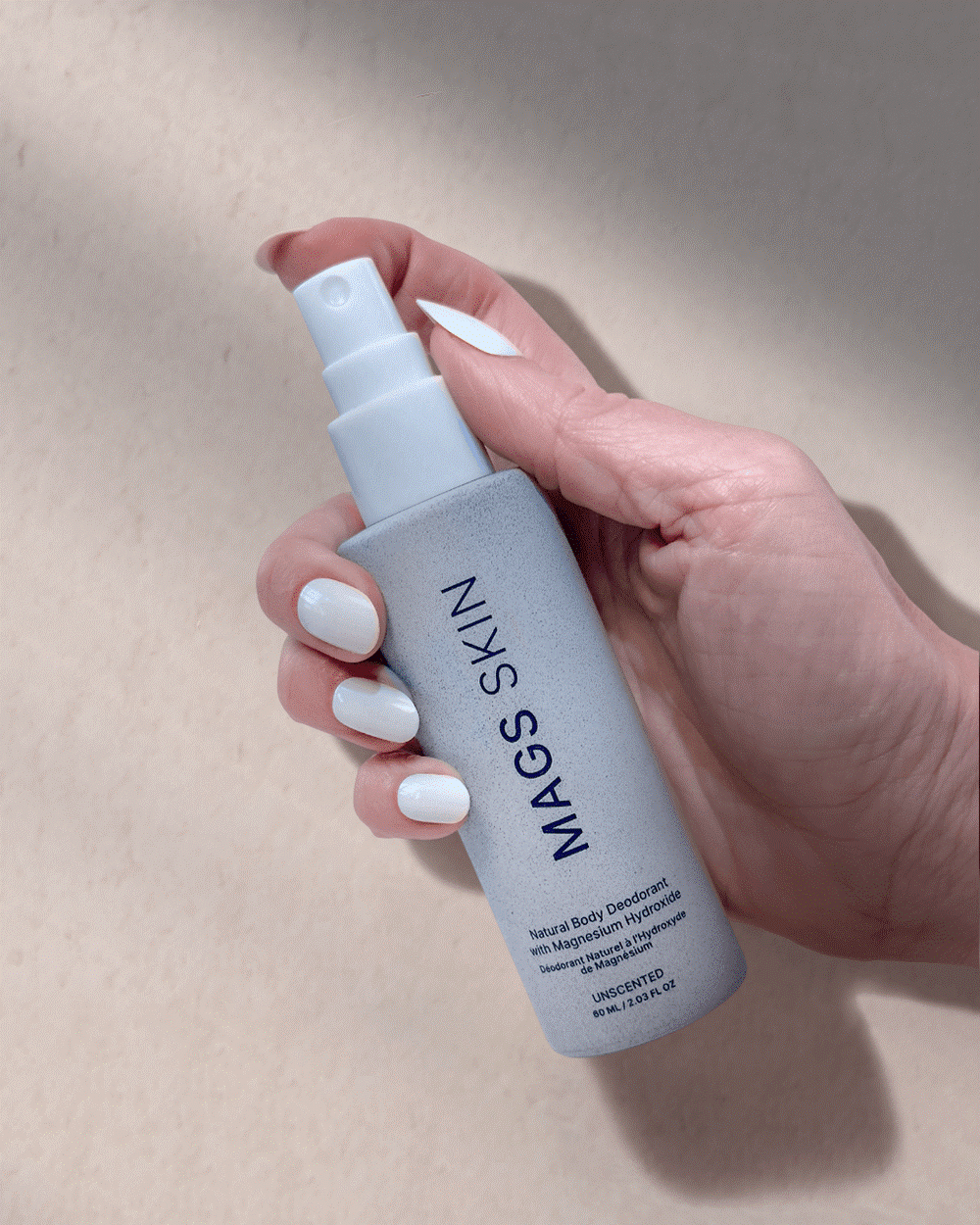 What sets MAGS Skin apart is the formula powered by magnesium hydroxide, which delivers a gentle, yet effective odor-fighter that helps balance underarm pH and neutralize bacteria without blocking sweat glands like aluminum deodorants. Every ingredient in this innovative spray deodorant supports the skin barrier rather than breaking it, so it doesn’t include fragrance, baking soda, or essential oils. Rubbing and the resultant friction from typical deodorants can irritate sensitive skin, so MAGS Skin uses a fine mist format that prevents irritation and reduces bacteria while avoiding friction.