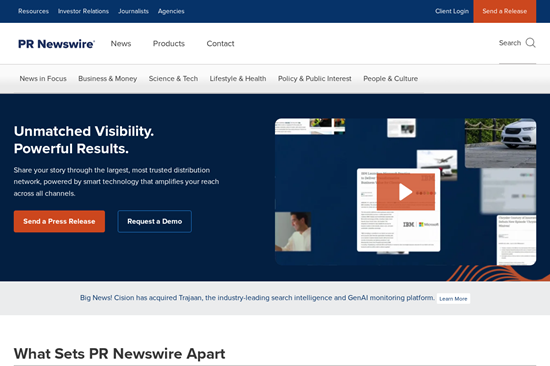 Business Wire operates in the premium tier with pricing starting at $475 and extending beyond $1,500. The platform offers 92,000+ outlets across 158 countries with 24/7 editorial review and SEC/EDGAR integration—valuable for enterprises and public companies. However, the enterprise focus means less intuitive usability for smaller teams, and costs escalate quickly. Many small-to-mid-market businesses don’t fully utilize the extensive reach, making premium pricing harder to justify.
