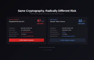 Unlike traditional vulnerability scanners that flag cryptography as “weak” or “strong,” Q-Scout 26 is designed to produce prioritized migration roadmaps. The platform distinguishes between systems using identical algorithms but protecting data with vastly different lifespans and business impact, enabling decision-grade prioritization rather than undifferentiated findings.