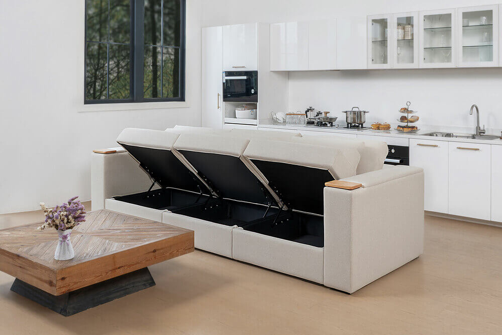 Rezy says the all-in-one approach can replace multiple pieces of living room furniture; table surfaces, storage units, accent lighting, and even some charging hubs, helping homeowners reclaim square footage and reduce purchases. Product pages emphasize the sofa’s role as a space multiplier, citing generous under-seat capacity via hydraulic hinges that keep lids open safely, along with armrest storage designed for laptops, books, and accessories. The company also points to performance fabrics that are both stain- and scratch-resistant, a detail of particular relevance to pet-friendly households and busy family rooms. The brand’s features breakdown and product listings detail how the combination of stowaway tray tables, cupholders, hidden power, and ambient smart lighting is meant to enhance both work-from-home routines and evening downtime without adding separate furniture or visible cords.