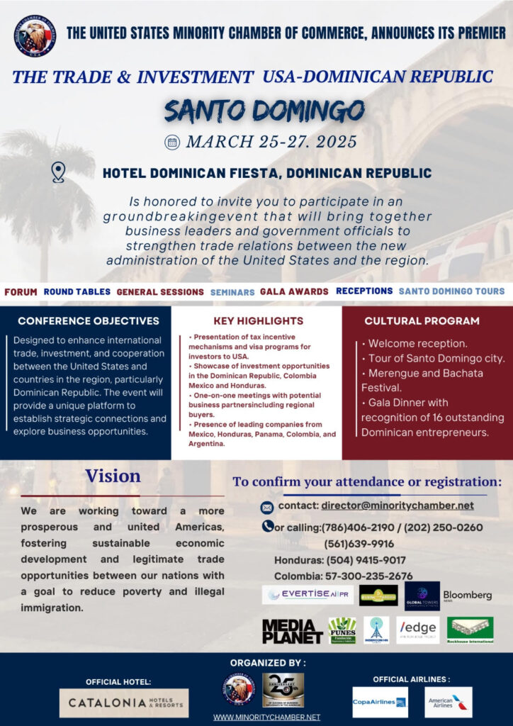 According to Doug Mayorga, president of the Washington DC-based Minority Chamber of Commerce of the United States, organizer of the event, “this summit is not an academic meeting, but a purely business platform where the Minority Chamber of Commerce of the United States commits to connecting suitable suppliers and buyers to the opportunities represented by the nations in the region.”